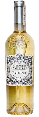 Conte Parelli Vino Bianco to włoskie półwytrawne wino białe, wytwarzane z jasnych odmian winogron zbieranych na terenie Włoch. Wino wyróżnia się intensywnym aromatem owoców takich jak morele, brzoskwinie i winogrona, co nadaje mu wyraźną słodycz i delikatność. Zawartość alkoholu wynosi 11%, co sprawia, że jest to trunek lekki i orzeźwiający. Producentem wina jest firma Angelo Rocca & Figli, założona w 1880 roku przez Francesco Rocca. Obecnie przedsiębiorstwo prowadzone jest przez wnuka założyciela, Ernesto, oraz jego synów, kontynuujących tradycję produkcji wysokiej jakości win.